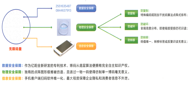 制假造假“零”存在。基于博碼在數(shù)據(jù)層、物理層和信息層的高安全性,博碼本身不易被復(fù)制、破壞和轉(zhuǎn)移。博碼云平臺可全面保障博碼的附著印刷從系統(tǒng)數(shù)據(jù)庫直接推送和管控,無人為接觸可能,從源頭斬?cái)嗔嗽旒俜肿拥脑旒傩袨椤?br style="box-sizing: inherit"/>包材外泄“零”危害。博碼云平臺可實(shí)現(xiàn)多級包裝和數(shù)據(jù)關(guān)聯(lián),消費(fèi)者通過對產(chǎn)品及包裝的內(nèi)外碼對比,確定是否買到回收包裝制假品。單純的回收或仿制包裝豪無意義。
